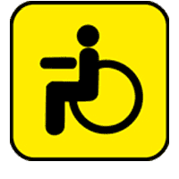 Инвалид — в виде квадрата желтого цвета со стороной 150 мм и изображением символа дорожного знака 7.17 черного цвета — спереди и сзади механических транспортных средств, управляемых инвалидами I и II групп или перевозящих таких инвалидов.