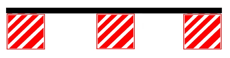 Длинномерное транспортное средство — в виде прямоугольника размером не менее 1200х200 мм желтого цвета с каймой красного цвета (ширина 40 мм), имеющего световозвращающую поверхность — сзади транспортных средств, длина которых с грузом или без груза более 20 м, и автопоездов с двумя и более прицепами. При невозможности размещения знака указанного размера допускается установка двух одинаковых знаков размером не менее 600х200 мм симметрично оси транспортного средства.