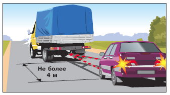20.3. При буксировке на гибкой сцепке должно быть обеспечено расстояние между буксирующим и буксируемым транспортными средствами в пределах 4-6 м, а при буксировке на жесткой сцепке — не более 4 м.