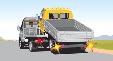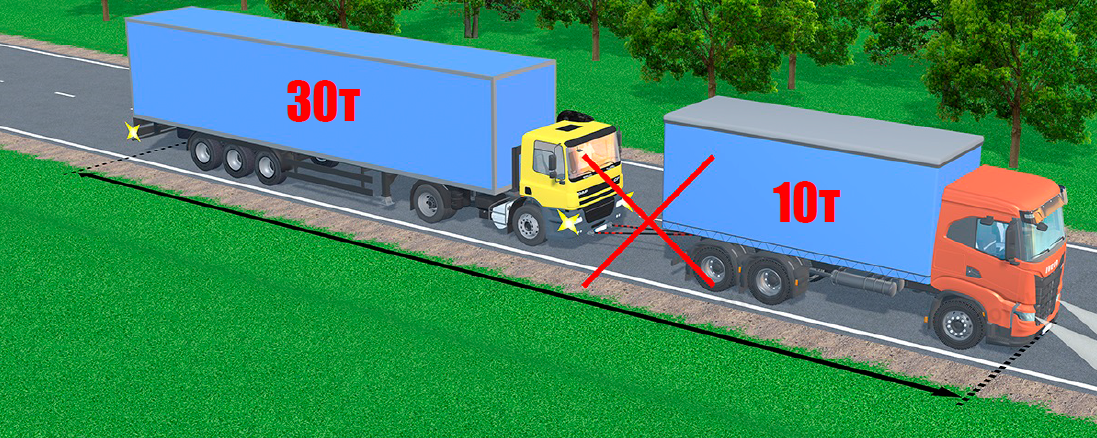 • транспортных средств с недействующей тормозной системой, если их фактическая масса более половины фактической массы буксирующего транспортного средства. При меньшей фактической массе буксировка таких транспортных средств допускается только на жесткой сцепке или методом частичной погрузки;