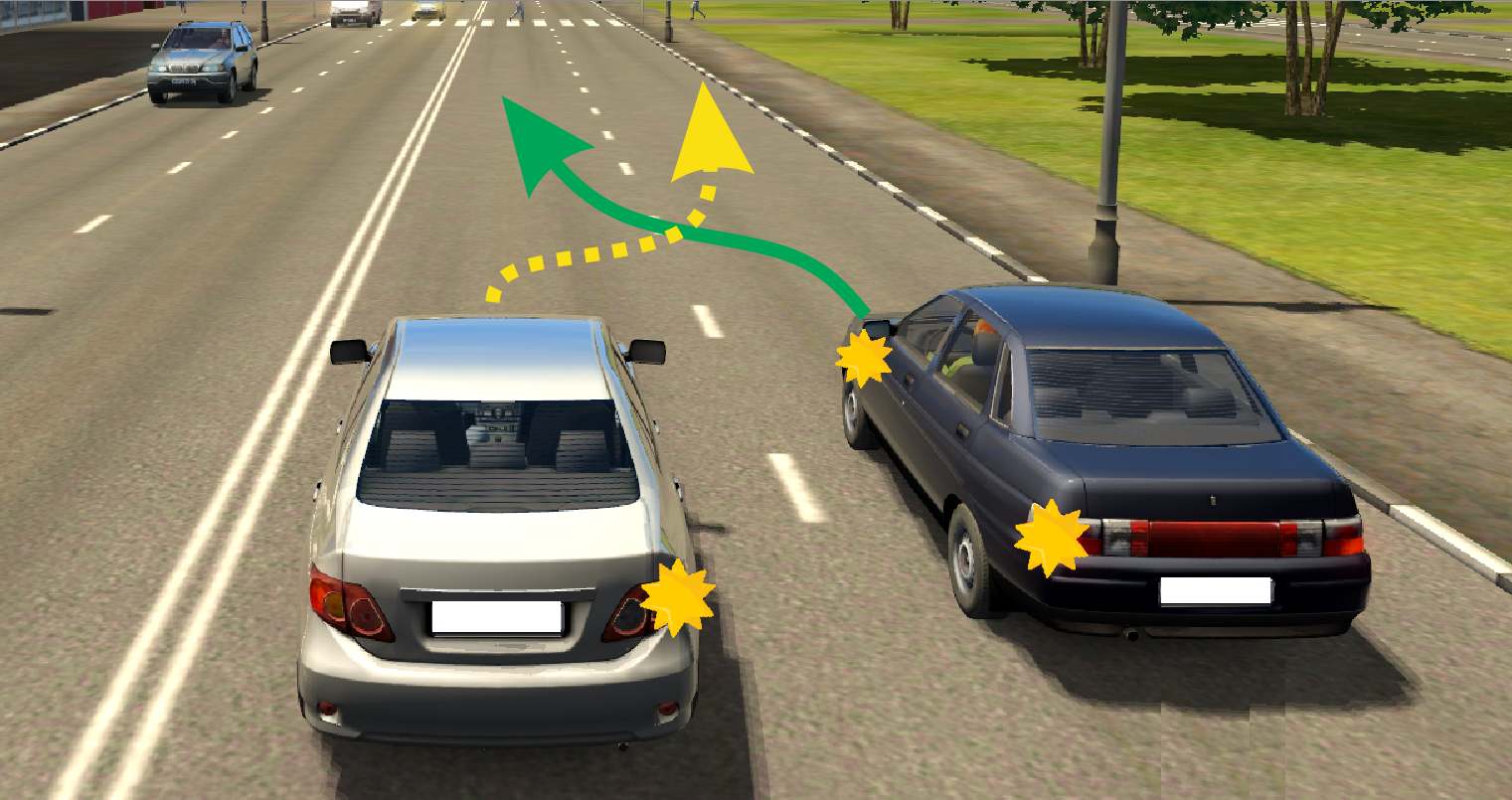 8.4. При перестроении водитель должен уступить дорогу транспортным средствам, движущимся попутно без изменения направления движения по соседней полосе с большей скоростью движения. При одновременном перестроении транспортных средств, движущихся попутно, водитель должен уступить дорогу транспортному средству, находящемуся справа.