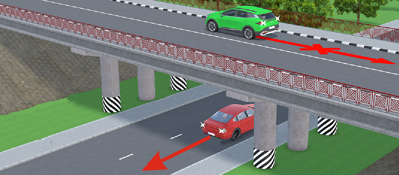 - на мостах, путепроводах, эстакадах и под ними;
