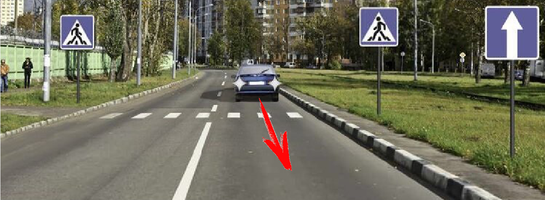 Примечание: Движение задним ходом на дорогах, обозначенных знаком 5.5 «Дорога с односторонним движением», не запрещается. Но поскольку на пути движения расположен пешеходный переход, на котором движение задним ходом запрещено (п. 8.12), водителю можно двигаться задним ходом на данном участке дороги только до пешеходного перехода.