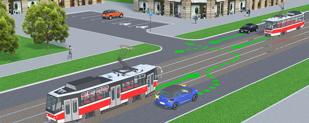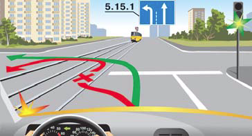 При наличии слева трамвайных путей попутного направления, расположенных на одном уровне с проезжей частью, поворот налево и разворот должны выполняться с них, если знаками 5.15.1 или 5.15.2 не предписан иной порядок движения. При этом не должно создаваться помех трамваю.