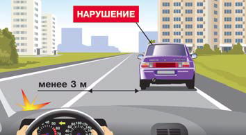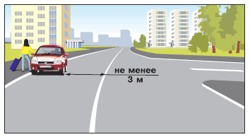 - в местах, где расстояние между сплошной линией разметки (кроме обозначающей край проезжей части) и остановившимся транспортным средством менее 3 м;