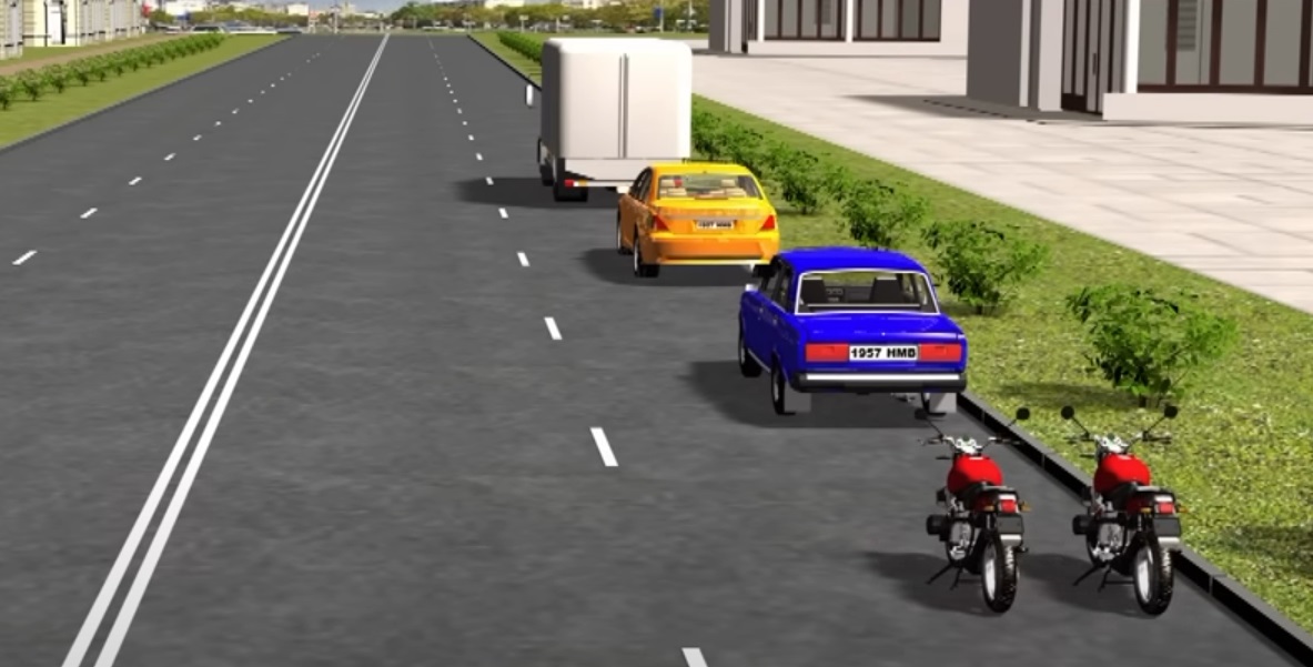 12.2. Парковка транспортного средства разрешается в один ряд параллельно краю проезжей части, за исключением тех мест, конфигурация (местное уширение проезжей части) которых допускает иное расположение транспортных средств. Двухколесные транспортные средства без бокового прицепа допускается парковать в два ряда.
