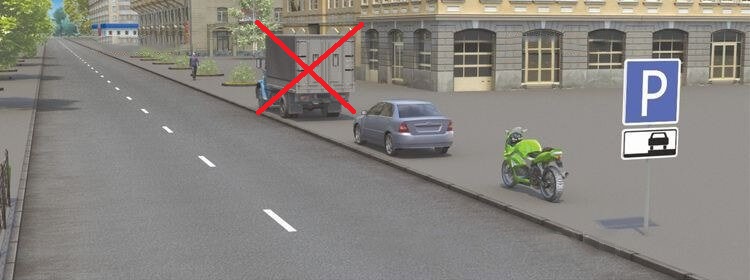 Стоянка (парковка) на краю тротуара, граничащего с проезжей частью, разрешается только легковым автомобилям, мотоциклам, мопедам, велосипедам и средствам индивидуальной мобильности при условии, что это не будет препятствовать движению пешеходов.