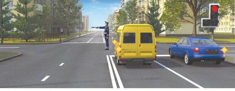 6.13. При запрещающем сигнале светофора (кроме реверсивного) или регулировщика водители должны остановиться перед стоп-линией (знаком 6.16), а при ее отсутствии:
