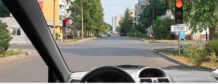 - в других местах — перед светофором или регулировщиком, не создавая помех транспортным средствам и пешеходам, движение которых разрешено.
