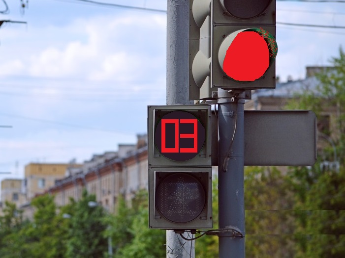 - зеленый мигающий сигнал разрешает движение и информирует, что время его действия истекает и вскоре будет включен запрещающий сигнал (для информирования водителей о времени в секундах, оставшемся до конца горения зеленого сигнала, могут применяться цифровые табло);