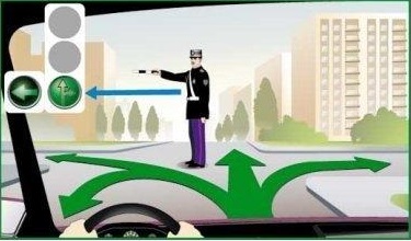 6.4. Если на основной зеленый сигнал светофора нанесена черная контурная стрелка (стрелки), то она информирует водителей о наличии дополнительной секции светофора и указывает иные разрешенные направления движения, чем сигнал дополнительной секции.