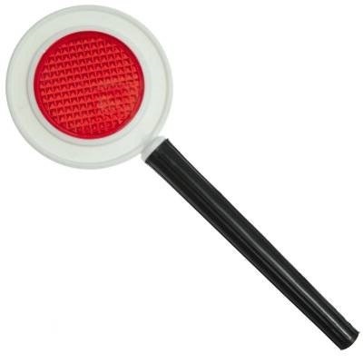 Для лучшей видимости сигналов регулировщик может применять жезл или диск с красным сигналом (световозвращателем).