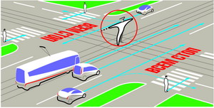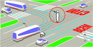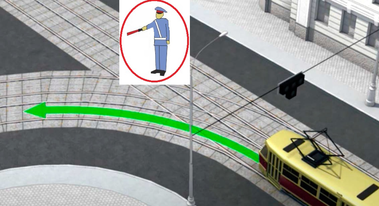- со стороны левого бока разрешено движение трамваю налево, безрельсовым транспортным средствам во всех направлениях;