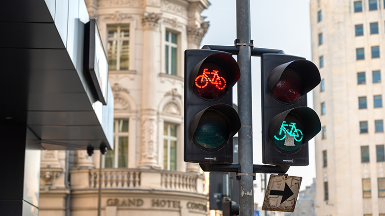 Для регулирования движения велосипедистов и лиц, использующих для передвижения средства индивидуальной мобильности, может использоваться также светофор с круглыми сигналами уменьшенного размера, дополненный прямоугольной табличкой белого цвета размером 200⨯200 мм с изображением велосипеда черного цвета.