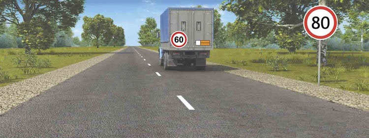 - превышать скорость, указанную на опознавательном знаке «Ограничение скорости»(*), установленном на транспортном средстве;