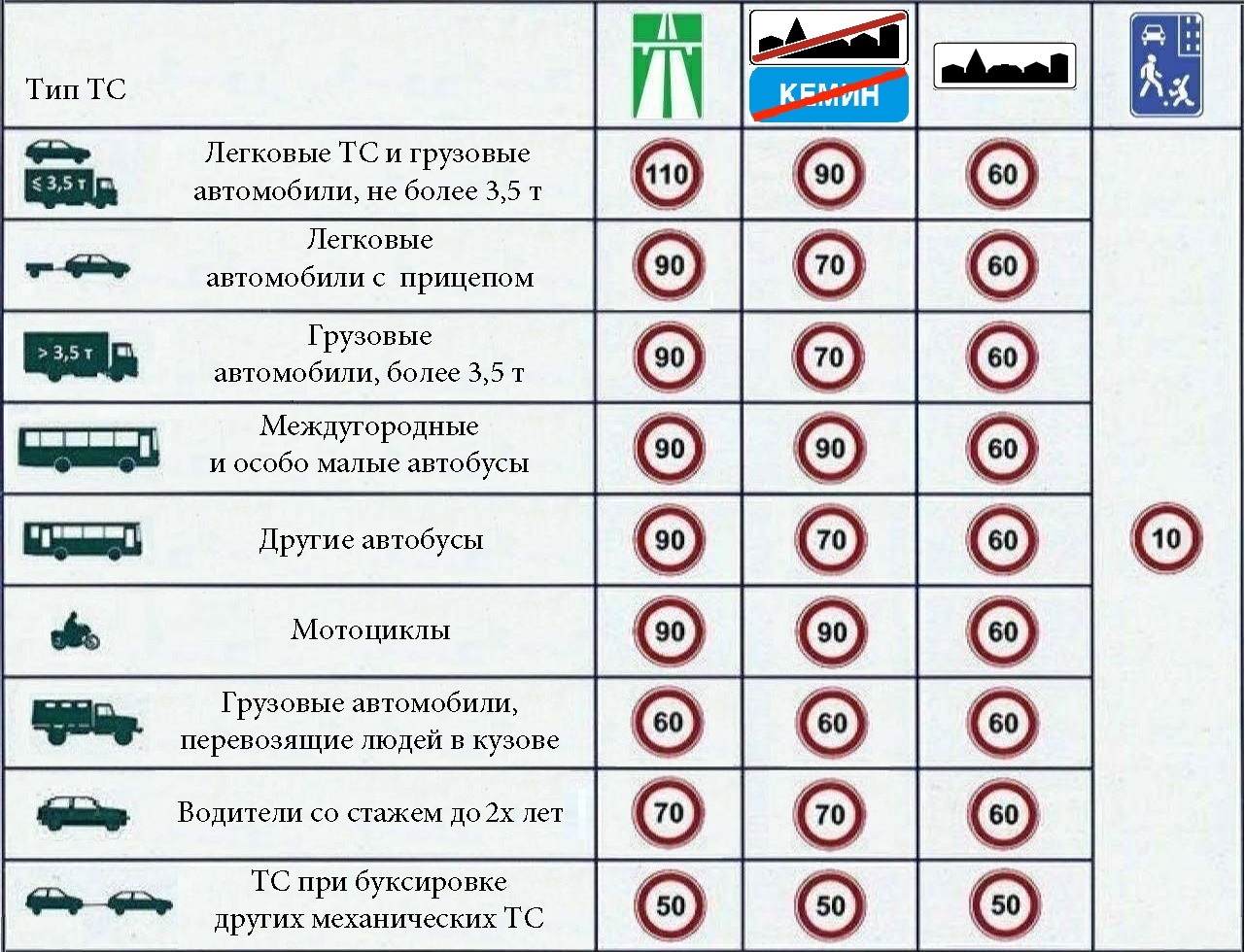 - легковым автомобилям и грузовым автомобилям с разрешенной максимальной массой не более 3,5 т на автомагистралях — со скоростью не более 110 км/ч, на остальных дорогах — не более 90 км/ч, за исключением случая, предусмотренного абзацем девятым настоящего пункта;